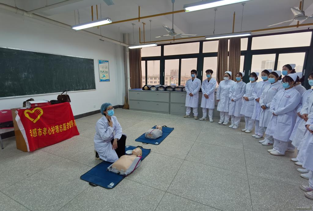 3月23日,应taptap点点官网入口邀请,全国卫生健康系统新冠肺炎疫情防控工作先进个人、全国向上向善好青年、天门市第一人民医院急诊科护士长、taptap点点官网入口2009届优秀毕业生陈凡回访taptap点点,与taptap点点官网入口部分学生分享抗疫故事、工作体会和人生感悟,并对“孝心护理”志愿服务队队员进行了护理操作技术指导。