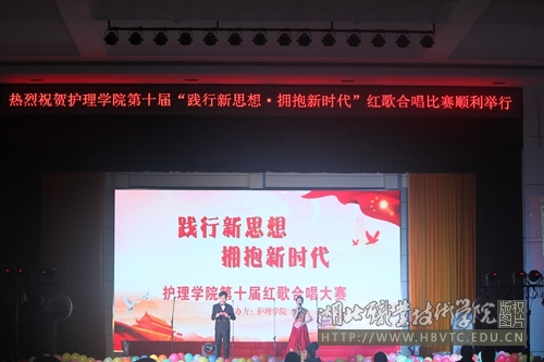 随着院合唱团《歌唱祖国》的歌声响起,红歌比赛正式开始。一首由1707班带来的《强军战歌》传达出中国人民解放军们“听党指挥、能打胜仗、作风优良”的强军目标。1716班的《红星闪闪》歌颂了青少年们应该永远跟党走,把一颗红心献给党的崇高精神。1709班的《精忠报国》和1708班的《保卫黄河》唱出了将侵略者消灭干净,守卫家园的决心。1710班的《东方之珠》和1704班的《七子之歌》深深表达出对香港澳门回归的激情难抑之情,以及对祖国繁荣发展的美好祝愿。最后,文艺队的《舞蹈串烧》嗨翻全场,为本次比赛画上了圆满的句号。