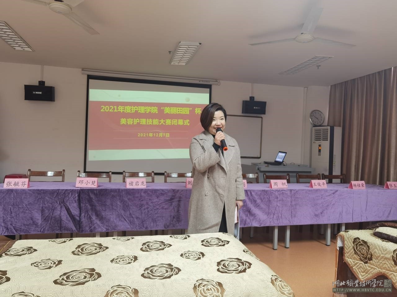 护理专业带头人田樱副教授、高级美容讲师周帆分别对两个赛项的比赛进行了精彩点评。她们对选手们认真的竞技态度、熟练的专业技能和良好的精神面貌给予了充分肯定,同时也指出了操作当中需要注意的细节问题,鼓励同学们加强专业技能学习,争取在未来成为专业领域里的佼佼者。