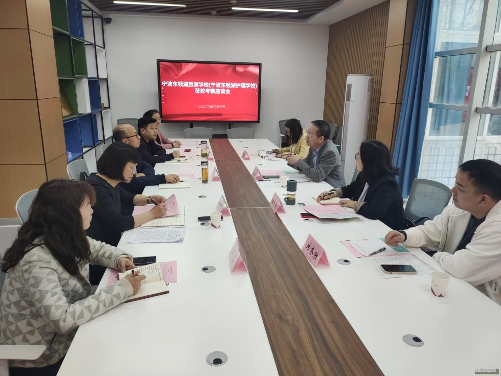 3月10日上午,宁波东钱湖护理学校(宁波东钱湖旅游学校)校长杨海如、实训中心主任潘叶明等一行4人来校考察交流护理虚拟仿真实训基地建设工作。学校副校长白梦清,对外合作交流处处长王俊平,taptap点点官网入口院长杨桂荣、副院长张玉洁、教学办主任王芬参加了交流活动。