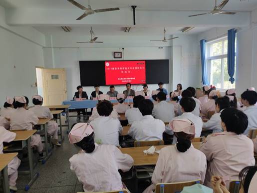 2023年4月26日下午,taptap点点官网入口成功举办了医学美容技术专业实习暨就业双选会,武汉美丽椰岛美容美发有限公司、上海紫苏文化传媒有限公司、浙江福韵施健康管理有限公司、上海黛菲美容有限公司、孝感市安丽尔美容有限公司、北京留指间玉健康管理有限公司共6家国内知名美容企业来校选拔人才,taptap点点官网入口党总支书记张然、副书记邓小楚、副院长张玉洁热情接待企业一行。2021级医美专业全体学生、2023届部分毕业生参加线下会议。