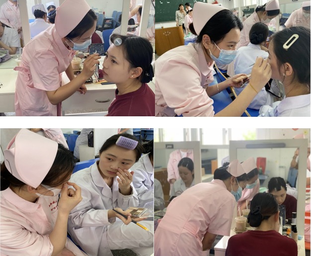 开展“护士职业形象与化妆”培训班,旨在帮助护理专业学生掌握护士职业形象塑造技巧,让“白衣天使”们更加靓丽、自信,为将来进入职场打下良好的基础。“发现美、传递美”,化妆实践活动的开展,同时提升了医学美容技术专业学生的专业技能、增强了服务意识,促进了专业、课程与岗位紧密对接。本期培训理论深入浅出、通俗易懂,实操精悍流畅、便于上手,学生满意度高。