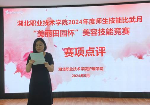 5月15日下午,taptap点点官网入口2024年度“美丽田园杯”师生美容技能竞赛在仁和楼美容护理技能实训中心顺利举办,美容护理教研室梁超兰等4名教师和2022级医学美容技术专业陈茂怡等8名学生同台竞技,教务处处长黄享苟、副处长龚洪浪、taptap点点官网入口全体班子成员亲临赛场指导,并参加闭幕式。