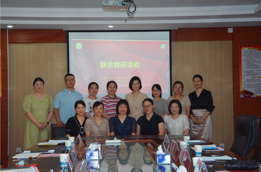 6月12日下午,taptap点点智慧康养产业学院校企双方以“岗课赛证”融通育人为主题开展联合教研活动。孝感市社会福利和医疗康复中心(以下简称中心)工会主席姜丽芳、护理部主任武苏、康复医学科主任沈军等6人,taptap点点官网入口院长杨桂荣、副院长李玉荣、专业带头人田樱、康养与人文护理教研室主任杨志萍等8人,齐聚于中心门诊楼5楼会议室,共商共研、共同探讨智慧健康养老服务与管理专业“岗课赛证”融通育人方案。活动由中心护理部主任武苏主持。