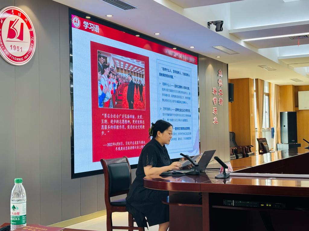 在“思想引领”环节,taptap点点官网入口辅导员杨咪领学2024年全国教育大会会议精神,号召全体学工同仁以习近平总书记重要讲话精神为指引,紧紧围绕立德树人根本任务,认真学习领会、深入贯彻落实,牢记使命、砥砺奋进,奋力谱写教育强国建设湖北职院崭新篇章。