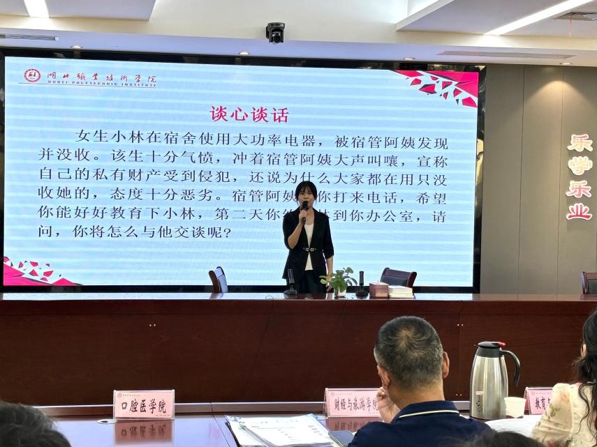 在“谈心谈话”环节,taptap点点官网入口辅导员万锐通过法、情、理、事,展示了如何有效的与学生沟通交流,也引发了现场众多一线辅导员的共鸣与思考。