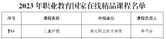 (本网讯 王芬)近日,教育部办公厅发布“关于2023年职业教育国家在线精品课程遴选结果的公告”,taptap点点官网入口李巧会副教授主持的《儿童护理》课程成功入选。