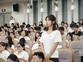 在宣讲环节,抗美援朝老战士、老英雄王清珍老人的孙子——刘航,深情讲述了王奶奶的英勇事迹。在战场上,王奶奶不顾个人安危,用嘴为伤员导尿,用实际行动诠释了“护佑生命、无私奉献”的崇高誓言。她还与战友们一起在枪林弹雨中,历经九死一生,将黄继光烈士的遗体从战场上寻回......这些鲜活的战地记忆,让在场师生无不为之动容。莘莘学子们深受感染,纷纷与刘航老师开展互动,大家纷纷表示:要将这份红色革命基因融入专业学习与生活实践,用实际行动传承红色革命精神,争做新时代的南丁格尔。