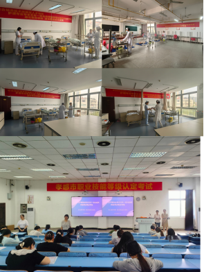 考核均由湖北医药学院出题。实践操作涵盖静脉输液、CPR、生命体征测量、皮内注射四项基础护理操作,满分100分,权重占25%,6月12日下午,操作考核在仁和楼开展,基础护理教研室配合完成考场布置与用物准备,操作现场,考生着装规范、动作娴熟,体现了高职阶段实践教学的扎实成效;笔试考核于6月13日上午在乐学楼712室进行,内容涵盖《护理学导论》《护理学基础》等课程核心理论知识,满分100分,权重占25%,由湖北医药学院教师命题并联合监考笔试,考场内秩序井然,考生专注答题,充分展现出扎实的理论功底与精益求精的应试素养。