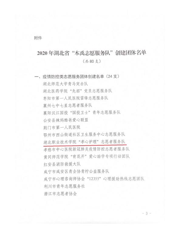 “孝心护理”志愿者服务队被确定为2020年湖北省“本禹志愿服务队”创建团体