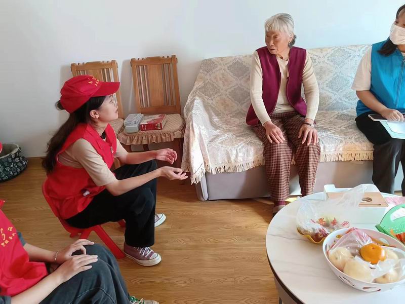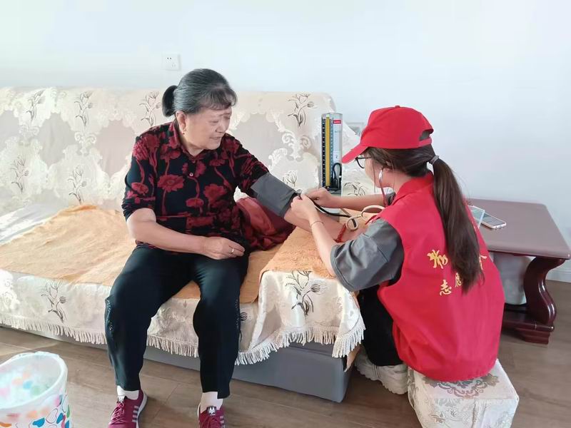 朝暮常相伴,情暖老人心,志愿者们来到老人家中,认真仔细的为她们量取血压、测量血糖,耐心嘱咐保健常识,悉心解答生活疑虑。志愿者们与老人们暖心交谈,老人们的眉眼中展露着感谢与欢喜。