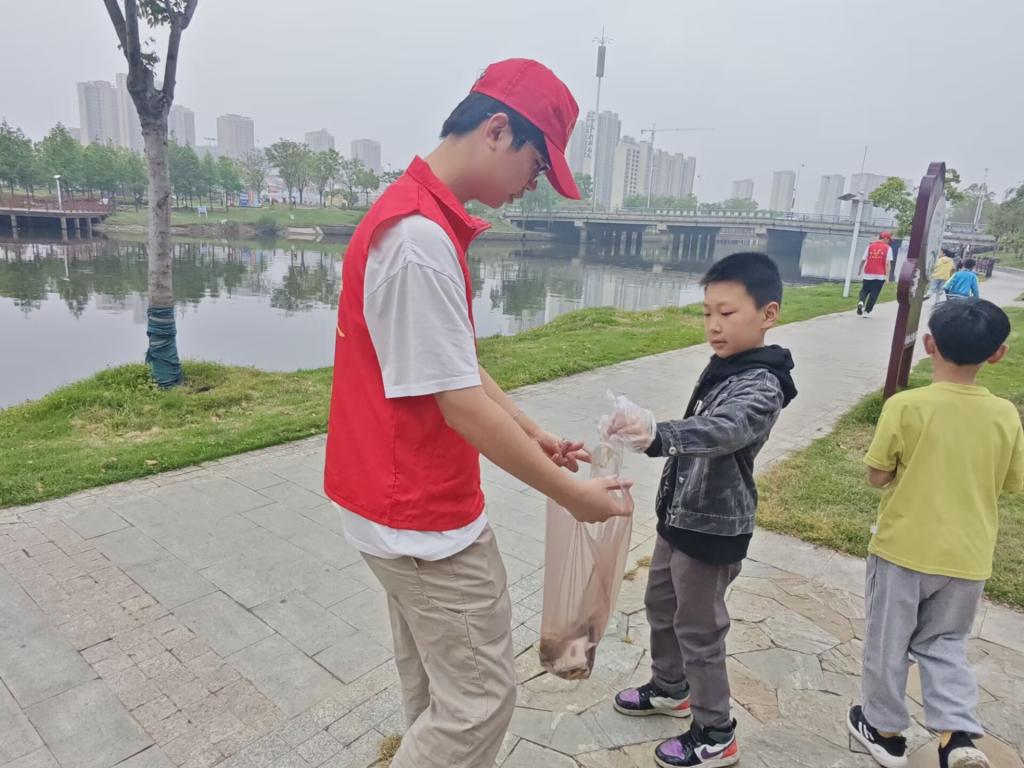 志愿者们耐心地引导小朋友们通过趣味卡片来学习如何进行垃圾分类,小朋友们看着自己分好类的卡片串成一串,脸上洋溢着快乐与自豪的笑容。随后在社工及志愿者的带领下,小朋友们来到附近的小河边戴着手套拾捡地面垃圾,分工合作,你捡我拿,配合默契。