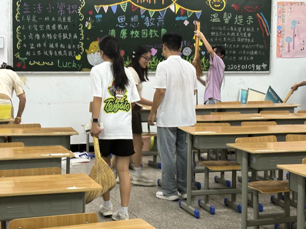 班级对接,温暖领航。23级各班同学一对一为24级各班新生清扫教室,布置新班级。认真检查教室设备是否通畅、桌椅是否完好,以干净整洁的环境迎接新一届护理学子的到来。