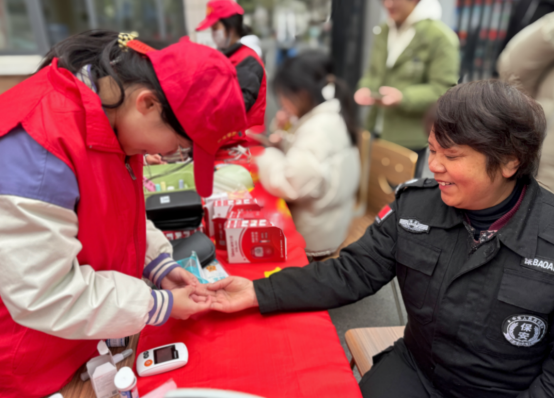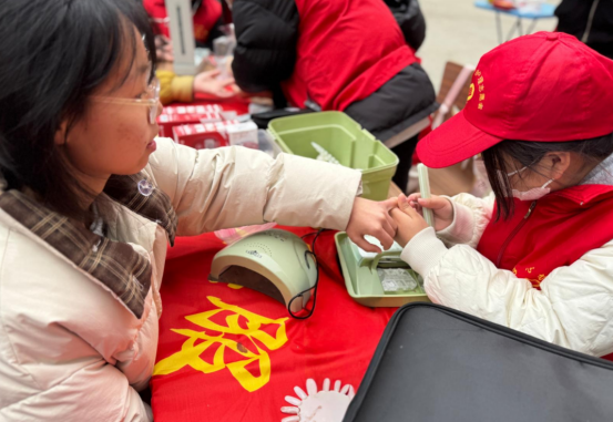 志愿者们抵达现场有序做好活动准备,有条不紊地摆放活动所需物品。从精致的美甲工具,到专业的血压测量仪、血糖仪等一应俱全,每一个细节都展现出志愿者们对此次活动的用心与重视。在健康检测区,负责测血糖量血压的志愿者们忙碌而专注,为阿姨们提供准确的健康数据,耐心解答健康疑问,并贴心给出科学的生活建议。负责美甲的志愿者们细致地为阿姨们修剪指甲、涂抹甲油,打造出精致的美甲。阿姨们脸上洋溢着灿烂的笑容,纷纷表示感受到了志愿者们满满的关爱,心里感到无比温暖与感动。